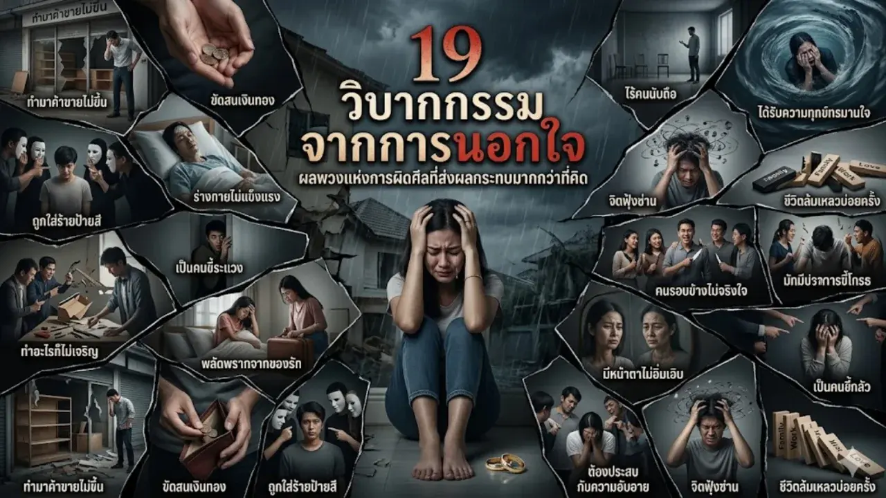 การนอกใจอาจเริ่มต้นด้วยความตื่นเต้นเพียงชั่วคราว แต่ผลที่ตามมานั้นเปรียบเสมือนเงาตามตัวที่สร้างรอยร้าวในชีวิตอย่างมหาศาล ตามหลักของกฎแห่งกรรมและการผิดศีลข้อ 3 การกระทำเหล่านี้ส่งผลกระทบต่อทั้งสภาพจิตใจ ความน่าเชื่อถือ และความเจริญในชีวิตอย่างหลีกเลี่ยงไม่ได้ มาดูกันว่า 19 วิบากกรรมที่ผู้กระทำมักจะต้องเผชิญมีอะไรบ้าง