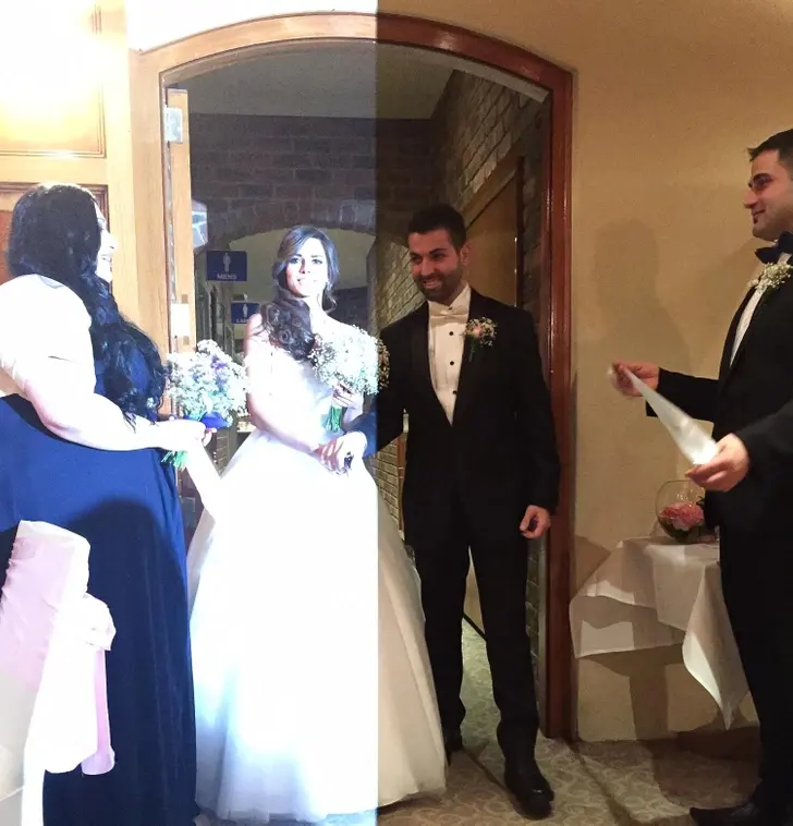 8. ฉันถ่ายรูปในงานแต่งงานในเวลาเดียวกับที่คนอื่นถ่ายรูปแบบเปิดแฟลชพอดี แล้วภาพที่ได้ก็กลายเป็นตัดคู่บ่าวสาวออกเป็นสองส่วน
