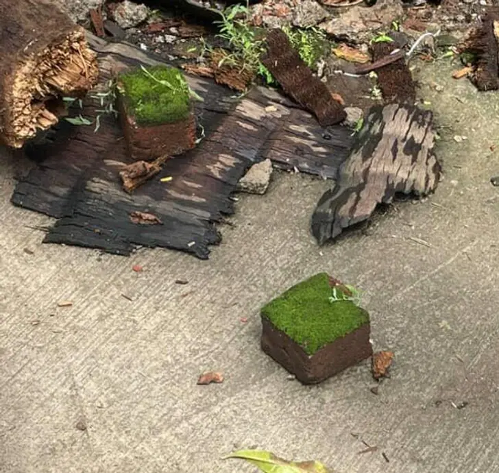 16. นี่คือบล็อกหญ้าจากเกม Minecraft ที่บังเอิญวางอยู่บนถนนที่ฉันกำลังเดินอยู่