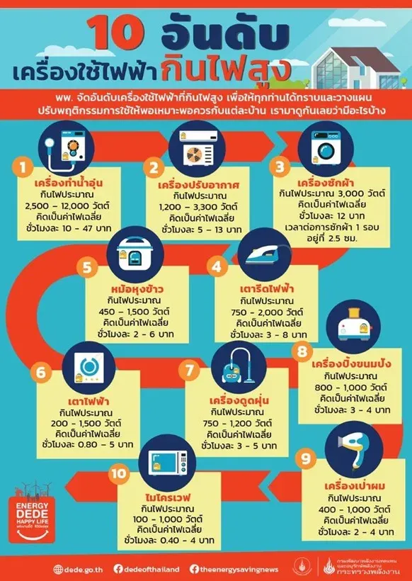 เผย 10 อันดับเครื่องใช้ไฟฟ้าที่กินไฟมากที่สุด..อันดับที่ 1 ไม่ใช่แอร์! ในยุคที่เศรษฐกิจตกต่ำและข้าวยากหมากแพงแบบนี้อะไรที่ควรประหยัดได้ก็ต้องประหยัดไม่เว้นแม้แต่เรื่องค่าไฟฟ้า ล่าสุด ทางกระทรวงพลังงานก็เผยข้อมูลเครื่องใช้ไฟฟ้าที่กินไฟสูง เรียกว่าคำนวณมาให้ดูกันเลยว่าใช้แต่ละครั้งต้องเสียเงินชั่วโมงละกี่บาท