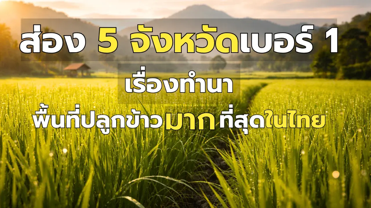 วันนี้จะขอพาทุกคนไปส่อง "5 จังหวัด" ที่ขึ้นชื่อว่าเป็น“เบอร์ 1” เรื่องพื้นที่ปลูกข้าวมากที่สุดในประเทศไทยเลยค่ะ ไม่ใช่แค่ปลูกเยอะอย่างเดียวนะ แต่ละพื้นที่เขามีความลับเรื่อง ดิน และ น้ำ ที่ทำให้เขากลายเป็นแชมป์ด้วย จะมีจังหวัดบ้านเกิดของใครบ้างนะ ตามไปดูกันเลยค่ะ!