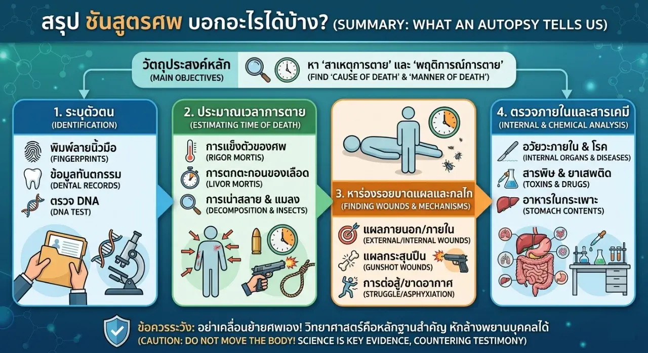 สิ่งที่ศพสามารถบอกเราได้มีหลายประเด็นหลักคือ...