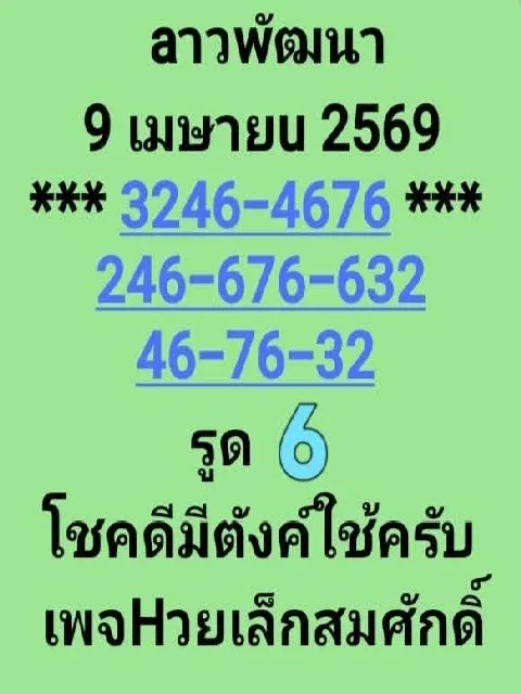 แนวทางหวยลาวพัฒนา งวดวันที่ 9 เมษายน 2569