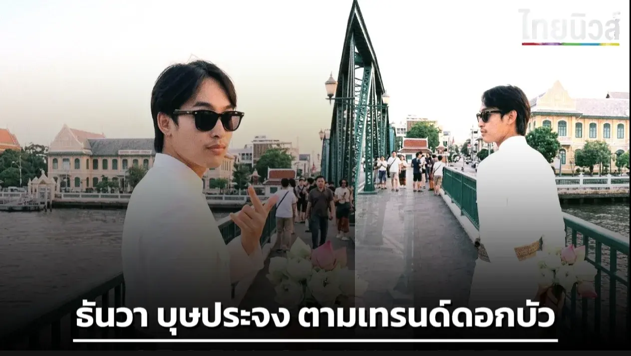 กระแสแรงไม่มีแผ่ว สำหรับเทรนด์ “ถือดอกบัวถ่ายรูป” บนสะพานพุทธ ที่ตอนนี้กำลังฮิตหนักในกลุ่มวัยรุ่น Gen Z ทั่วโซเชียล ล่าสุด ธันวา บุษประจง หรือที่รู้จักกันในชื่อ “ธันวา พาทัวร์” ก็ไม่พลาดร่วมเทรนด์นี้ ออกมาโพสต์ภาพลุคหล่อเท่ ถือดอกบัวท่ามกลางบรรยากาศริมแม่น้ำเจ้าพระยา สร้างกระแสไวรัลจนถูกแชร์ต่ออย่างรวดเร็ว