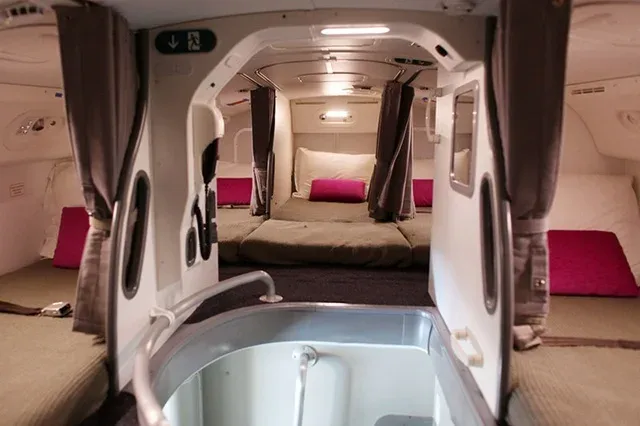 ถึงตอนนี้ก็คิดว่าหลายๆ คนคงจะหายสงสัยกันแล้วว่า เวลาเรานั่งเครื่องบินระหว่างประเทศนานๆ ทำไมพนักงานแฮร์โฮสเตสบางคนถึงได้หายหน้าหายตาไป เธอไม่ได้วาร์ปหายไปไหนแค่ไปพักผ่อนเฉยๆ สำหรับสาวๆ ท่านใดที่อยากจะสัมผัสประสบการณ์แบบนี้ ก็อย่าลืมไปสมัครเป็นแอร์โฮสเตสกันน่ะ แล้วจะได้รู้ว่าแอร์โฮสเตสพวกเธอนอนบนเครื่องบินยังไง