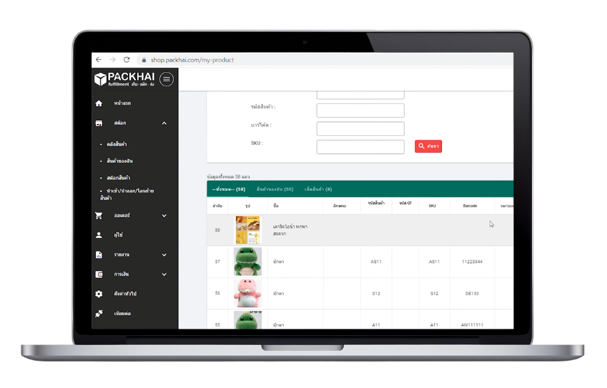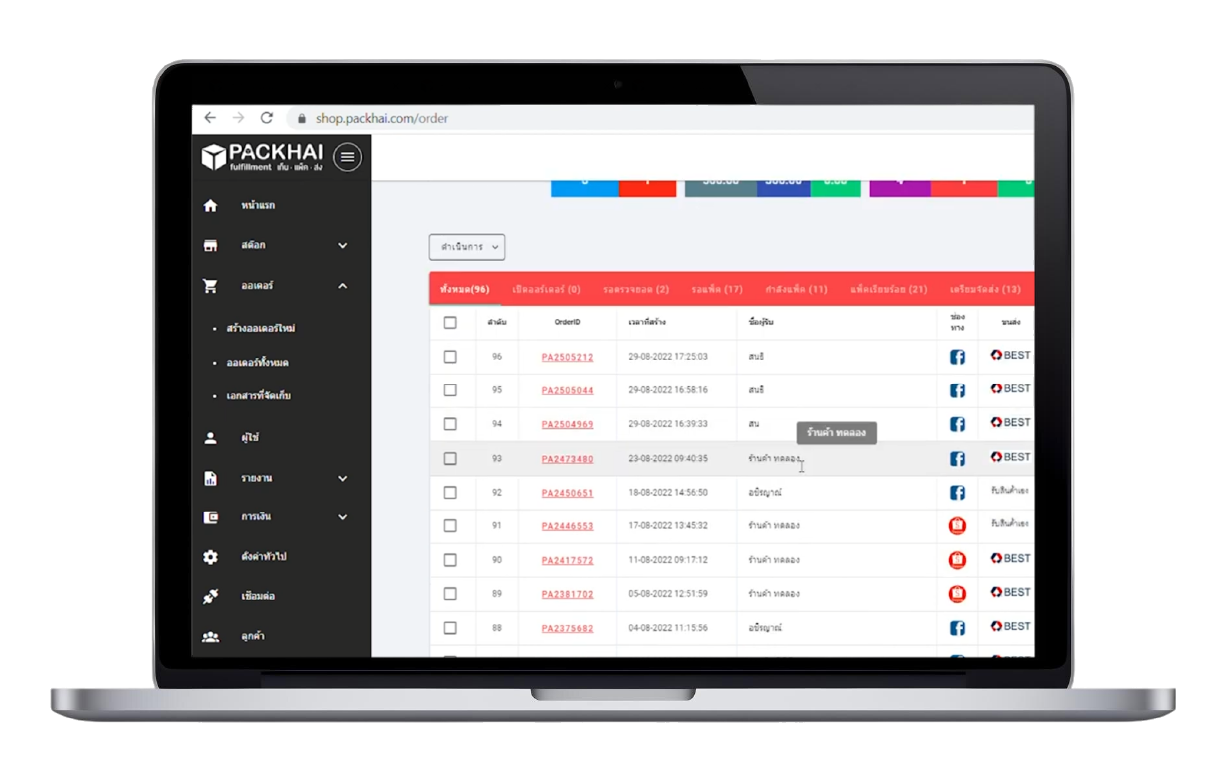 ดูตัวอย่างระบบหลังบ้าน https://Packhai.com/fulfillment/