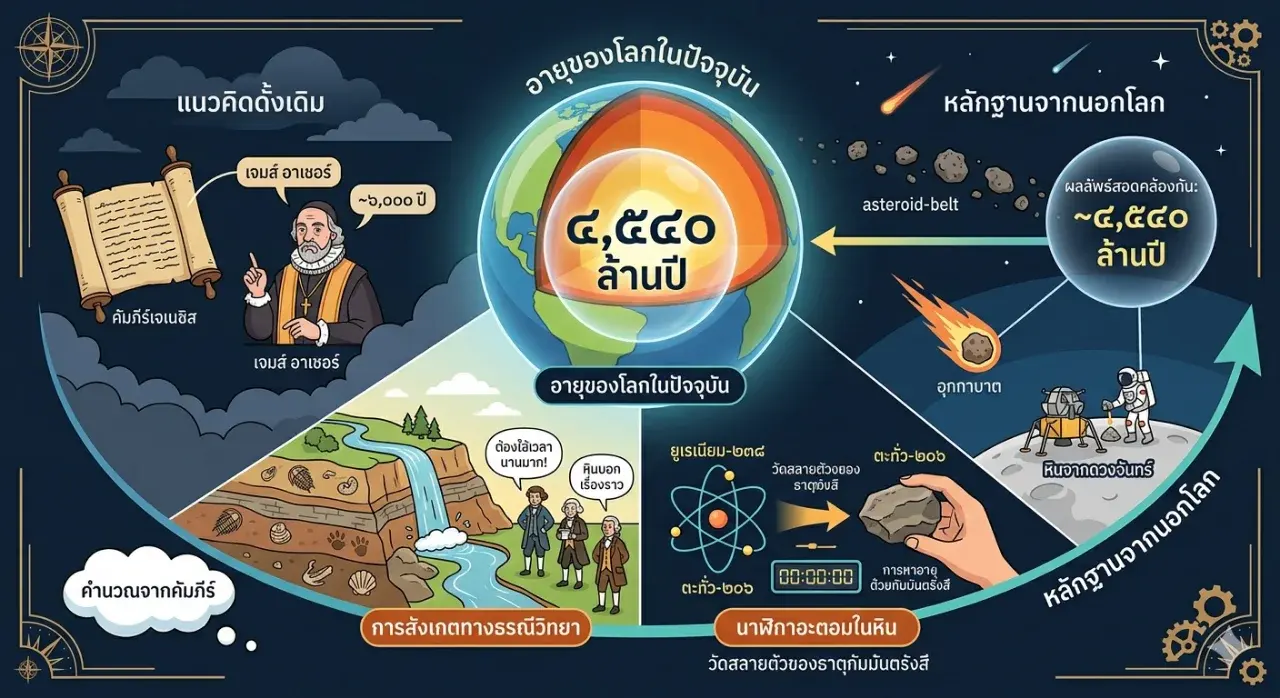 ผลการวัดอายุจากแหล่งต่างๆ นักวิทยาศาสตร์รู้ว่าโลกมีอายุเป็น ล้าน ปี