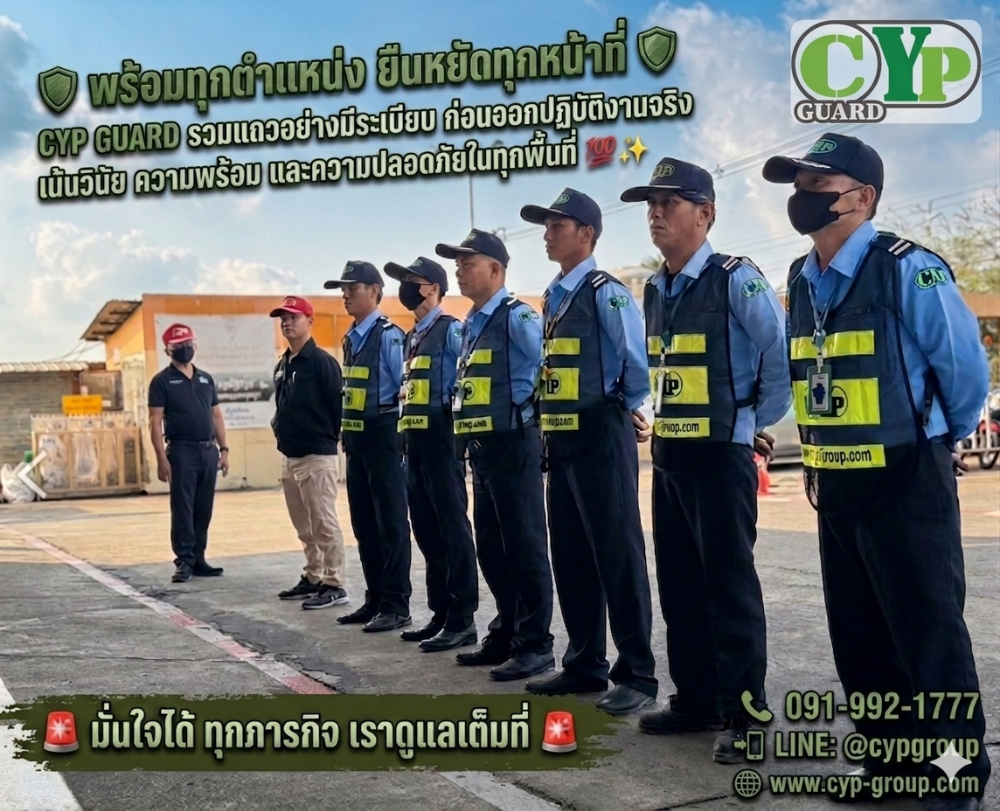 ความใส่ใจในรายละเอียดเล็ก ๆ น้อย ๆ เช่น การตรงต่อเวลา การแต่งกายที่เรียบร้อย และการสื่อสารที่ชัดเจน ล้วนเป็นสิ่งที่สะท้อนถึงความเป็นมืออาชีพของเจ้าหน้าที่ CYP GUARD ทุกคน เพราะเราเชื่อว่า “ความปลอดภัยที่ดี เริ่มต้นจากมาตรฐานที่เข้มงวด”