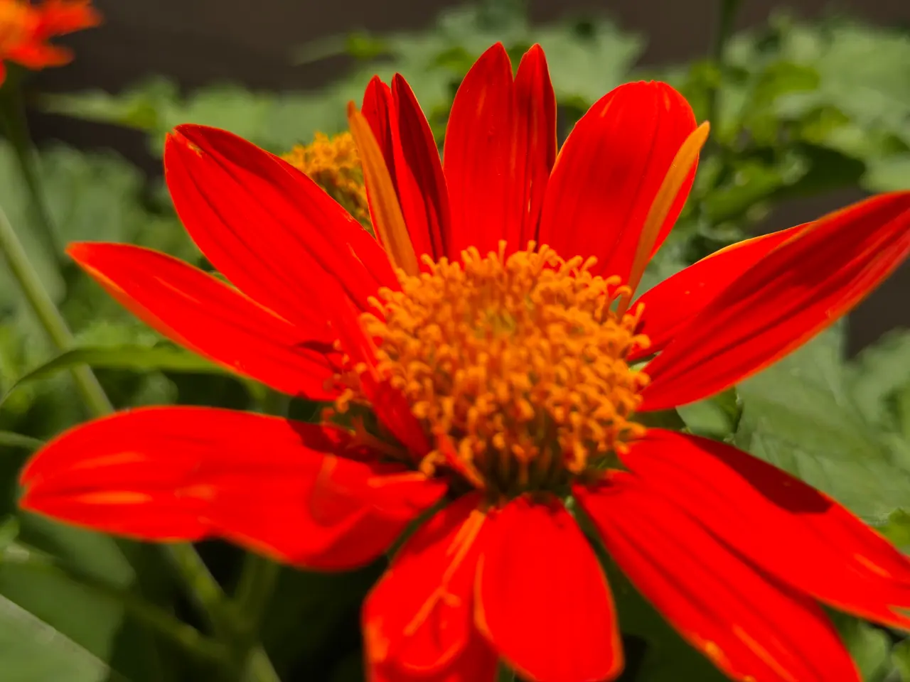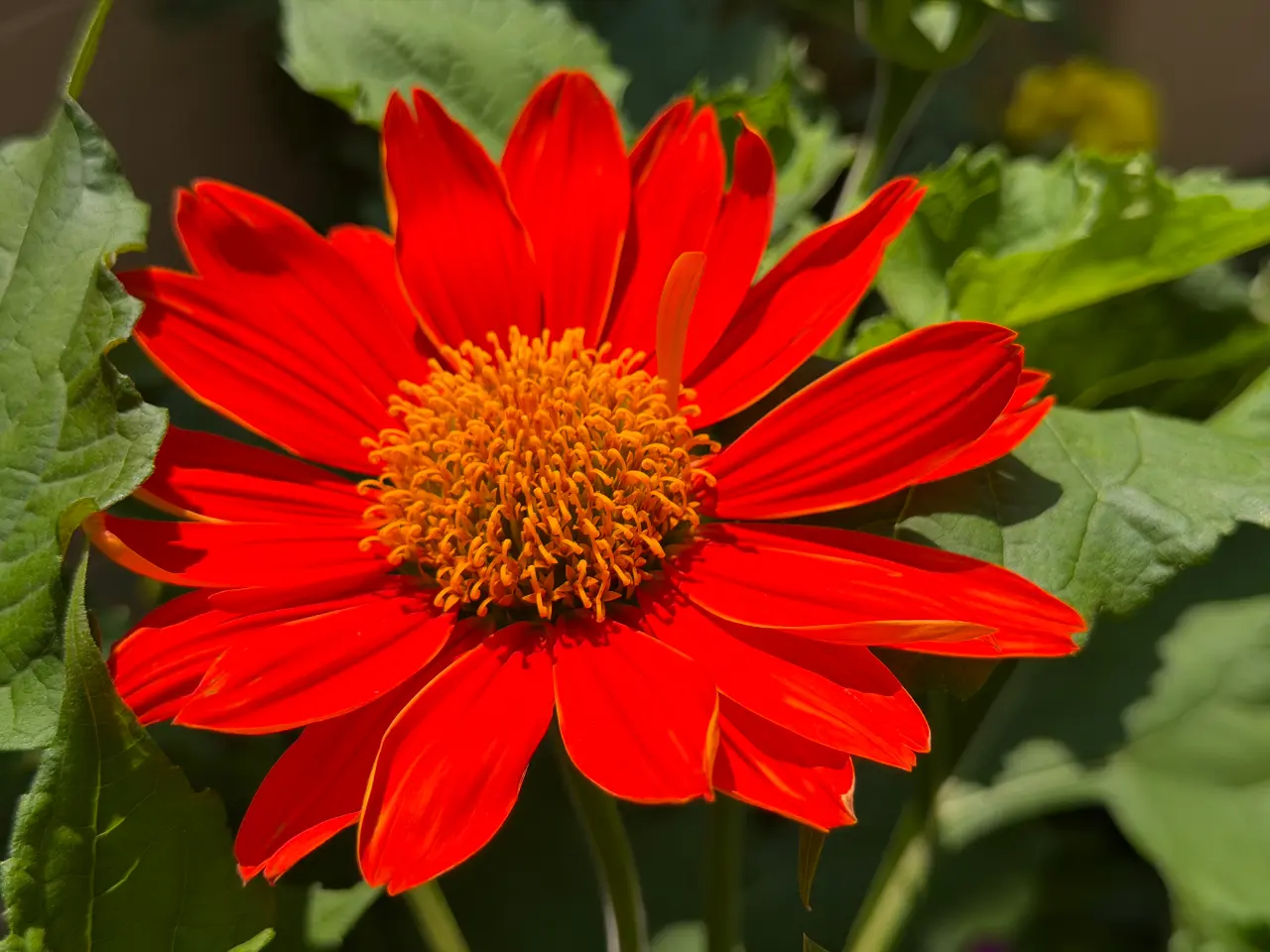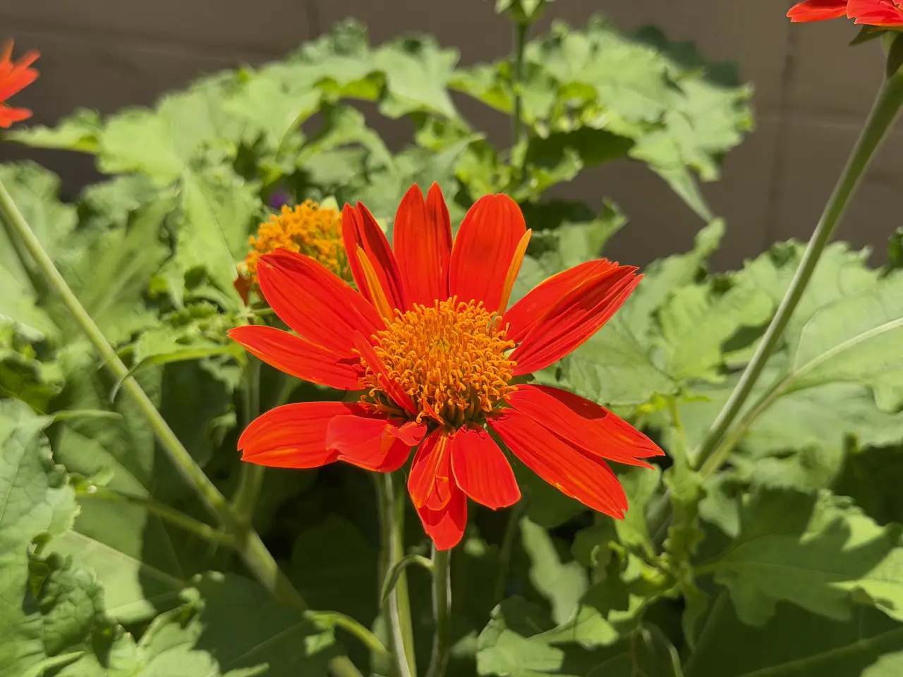 🌼 ลักษณะทั่วไป ดอกทานตะวันเม็กซิโกมีลักษณะคล้ายทานตะวัน แต่จะมี สีส้มเข้มหรือสีส้มอมแดง ขนาดดอกปานกลาง กลีบดอกเรียวยาว ส่วนตรงกลางเป็นสีเหลืองสด ลำต้นสูงประมาณ 1–3 เมตร ใบมีลักษณะหยักเล็กน้อย ดูเป็นธรรมชาติและสวยงาม