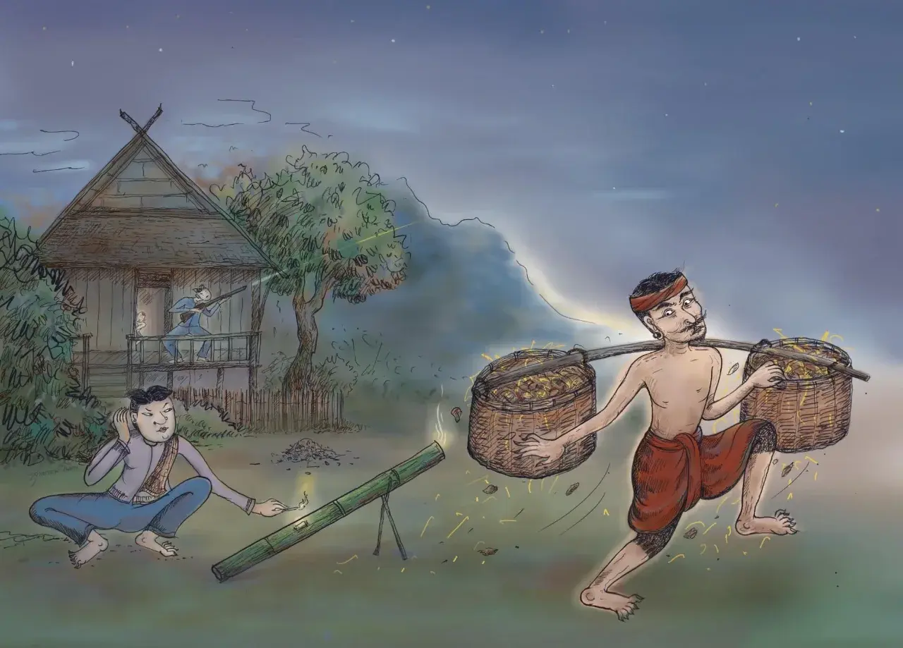 จากภาพของคนมีอายุแล้วดูไม่น่าพิสมัย ยิ่งเพิ่มความหมายในการนำไปซึ่งสิ่งที่ไม่พึงปรารถนา จึงเกิดเรื่องเล่าเชิงมุขปาฐะว่าคนที่ถูกกล่าวถึงเป็นคนที่จะมาเอาขยะมูลฝอยแห่งปีไปทิ้ง มีชื่อเรียกว่า “ปู่สังขาน” บางแห่งมี “ย่าสังขาน”ตามมาด้วย เพื่อมารับเอาขยะมูลฝอยสิ่งอันได้แก่อัปมงคลไปทิ้งพร้อมกับปีเก่า ภาพของสิ่งดังกล่าวจึงมักเป็นคนมีอายุแทนความชรา ชุมชนใดใกล้ถนนก็หาบกระบุงขยะผ่านมาทางถนน บ่อนบ้านใดใกล้คลองชลก็มาโดยอาศัยเรือหรือแพ เมื่อรับสิ่งไม่พึงปรารถนาไปแล้วก็ควรให้ด่วนรีบไปโดยเร็วพลัน จึงเกิดการขับไล่ด้วยเสียงปืน เสียงประทัด เคาะกะโหลกโขกกะลา คราอรุณรุ่งของวันมหาสงกรานต์