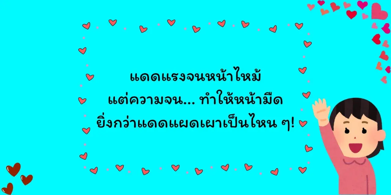 เป็นการเล่นคำเปรียบเทียบระหว่างสภาพอากาศที่ทำให้ทุกอย่างอ่อนระทวย กับภาระค่าใช้จ่ายที่แข็งแกร่งสวนทางกันอย่างสิ้นเชิง เพื่อประชดชีวิตว่าอุณหภูมิพุ่งสูงแค่ไหน เงินในกระเป๋าก็ไม่เคยพุ่งตาม มีแต่รายจ่ายที่ทนทานยิ่งกว่าแดด เชื่อว่าเพื่อน ๆ ที่ได้อ่านรู้สึกว่า "เราคือพวกเดียวกัน" ที่กำลังเผชิญวิกฤตเศรษฐกิจในหน้าร้อนนี้