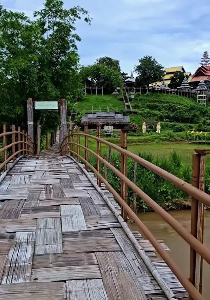 เป็นสะพานไม้ไผ่ที่ ยาวที่สุดในประเทศไทย (~500 เมตร) พาดผ่านทุ่งนา ภูเขา และหมู่บ้าน บรรยากาศธรรมชาติสุด ๆ