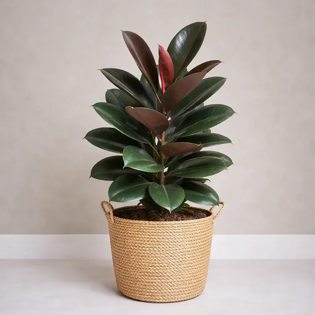 ส่วนยางอินเดียเป็นไม้ใบที่มีความโดดเด่นเรื่องใบขนาดใหญ่ สีเขียวเข้มเป็นมันเงา ให้ความรู้สึกทันสมัยและมีสไตล์ เหมาะกับการตั้งเป็นจุดเด่นของห้อง เช่น มุมรับแขกหรือมุมถ่ายรูปภายในบ้าน ยางอินเดียเป็นพืชที่ดูแลง่าย ทนทานต่อสภาพแวดล้อมภายในบ้านได้ดี สามารถอยู่ในที่แสงน้อยถึงปานกลาง และต้องการน้ำไม่มาก เพียงรดน้ำเมื่อดินเริ่มแห้งก็เพียงพอ