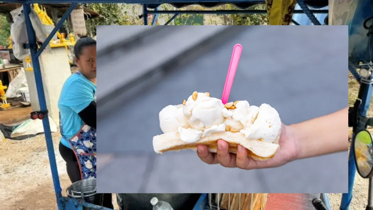 การนำขนมปังมาใช้รองไอติมเพื่อซับน้ำที่ละลาย ถือเป็นหนึ่งในสิ่งประดิษฐ์ความอร่อยแบบฉบับไทยแท้ที่หาดูได้ยากจากที่อื่น