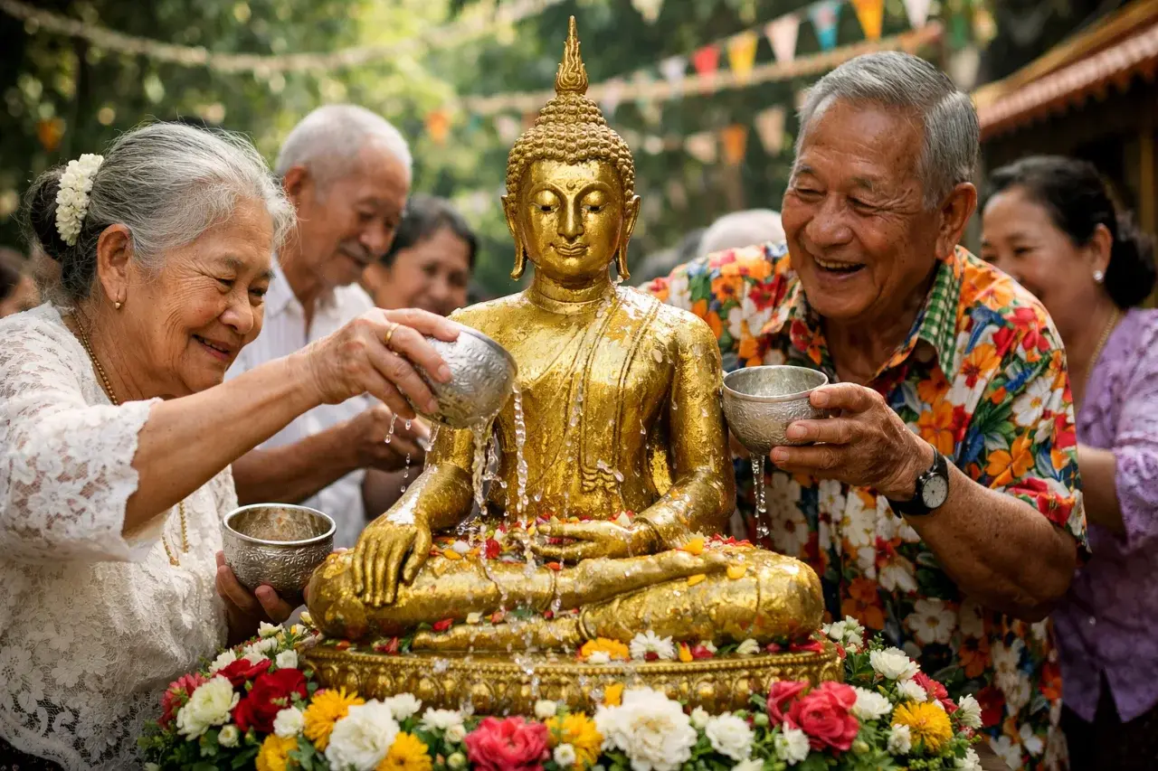 “ภาพจำลองประกอบเนื้อหา เพื่อสื่อบรรยากาศสงกรานต์ไทย”