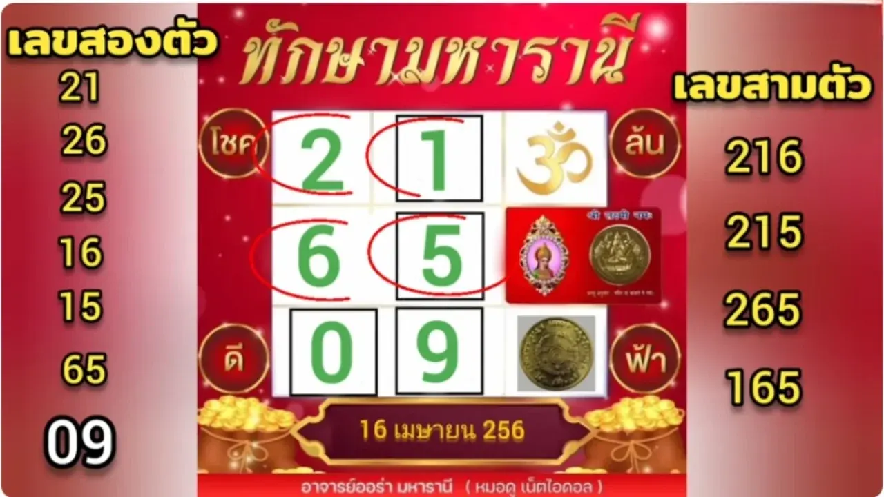 การวิเคราะห์ตัวเลขตามศาสตร์ทักษาเป็นอีกหนึ่งแนวทางที่ได้รับความนิยมสูง เนื่องจากเป็นการจับคู่ตัวเลขที่มีความสัมพันธ์กันตามตำราโบราณ สำหรับงวดวันที่ 16 เมษายน 2569 นี้ แนวทางจากตารางทักษามหารานีโดยอาจารย์ออร่า มหารานี ได้ถูกปล่อยออกมาเพื่อเป็นข้อมูลในการตัดสินใจสำหรับนักเสี่ยงโชคที่ต้องการความแม่นยำและเลขที่ผ่านการวิเคราะห์มาอย่างดี
