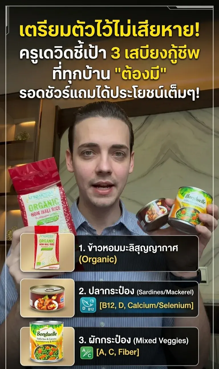 เตรียมตัวไว้ไม่เสียหาย! ครูเดวิดชี้เป้า 3 เสบียงกู้ชีพที่ทุกบ้าน "ต้องมี" รอดชัวร์แถมได้ประโยชน์เต็มๆ!