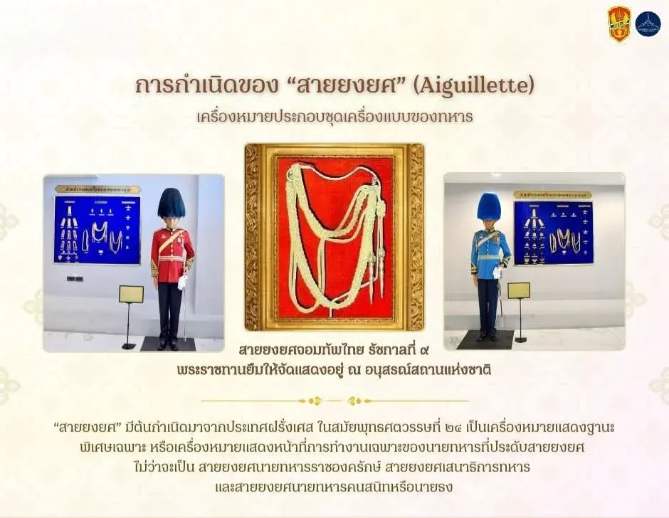 สืบเนื่องจาก จักรพรรดินโปเลียนมีความพิถีพิถันในเรื่องการแต่งกายของทหารมากพอๆ กับการฝึกหัด จึงตั้งใจจะให้นายทหารฝ่ายเสนาธิการเหล่านั้นมีกำลังใจในการปฏิบัติงาน จึงกลายเป็นที่มาของ "สายยงยศ" โดยฝ่ายเสนาธิการจะเป็นสายไหมทองหรือไหมเหลือง ถัก ๑ เส้น สายเกลี้ยง ๑ เส้น กับตุ้มโลหะสีเหลืองทอง ๑ ตุ้ม ประกอบชุดเครื่องแบบปกติ สำหรับไหมทองจะให้ใช้เมื่อแต่งเครื่องแบบเต็มยศ ครึ่งยศ และเครื่องแบบสโมสร แต่หากเป็นเครื่องแบบปกติชนิดลำลองเสื้อเชิ้ตให้ใช้สายยงยศไหมเหลืองเกลี้ยง ทำเป็นบ่วงรวบปลายไว้ใต้อินทรธนูขวา และบ่วงคล้องดุมอกเสื้อเหมือนเดิม ซึ่งใช้ได้มาจนถึงปัจจุบันนี้