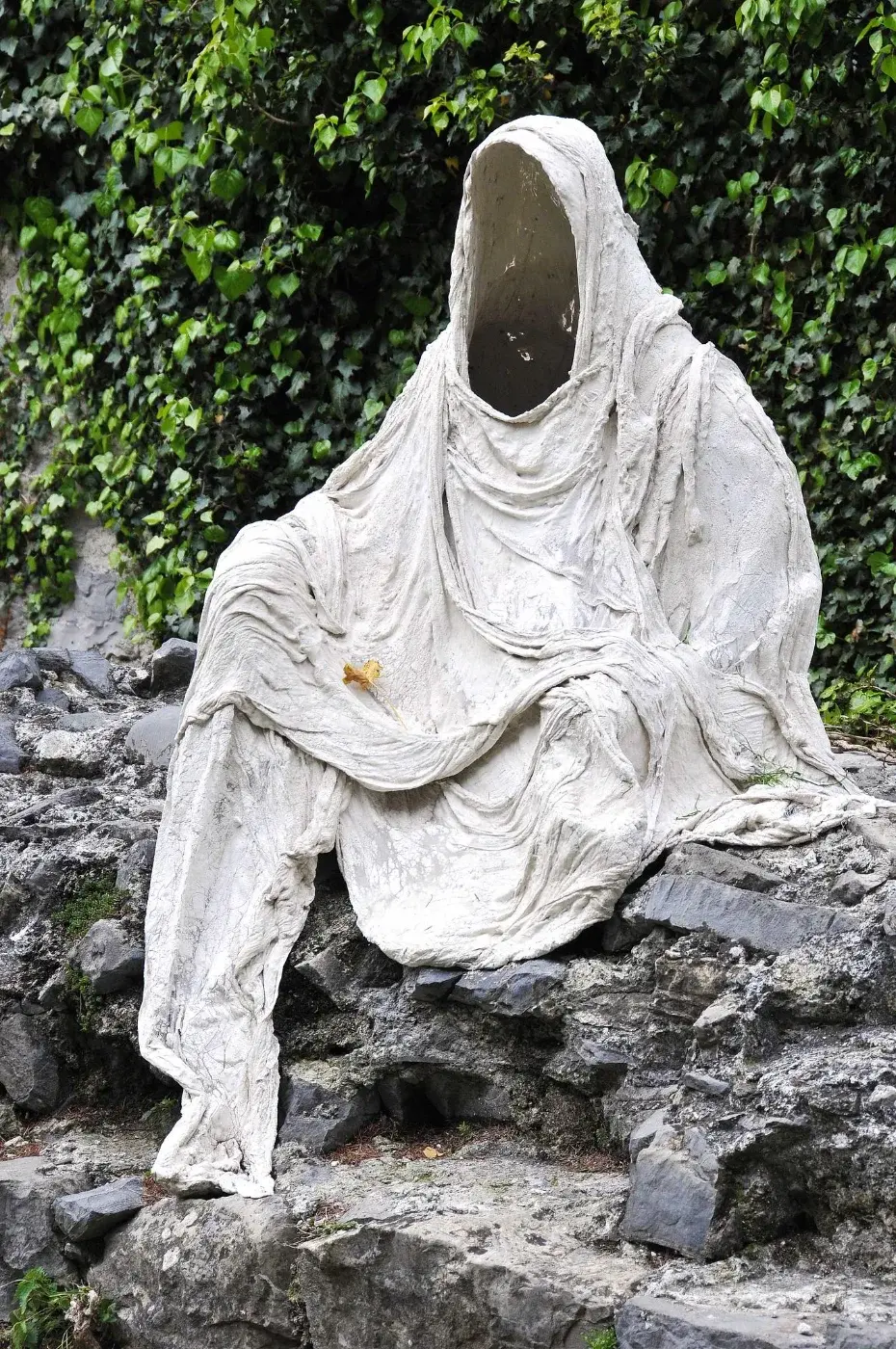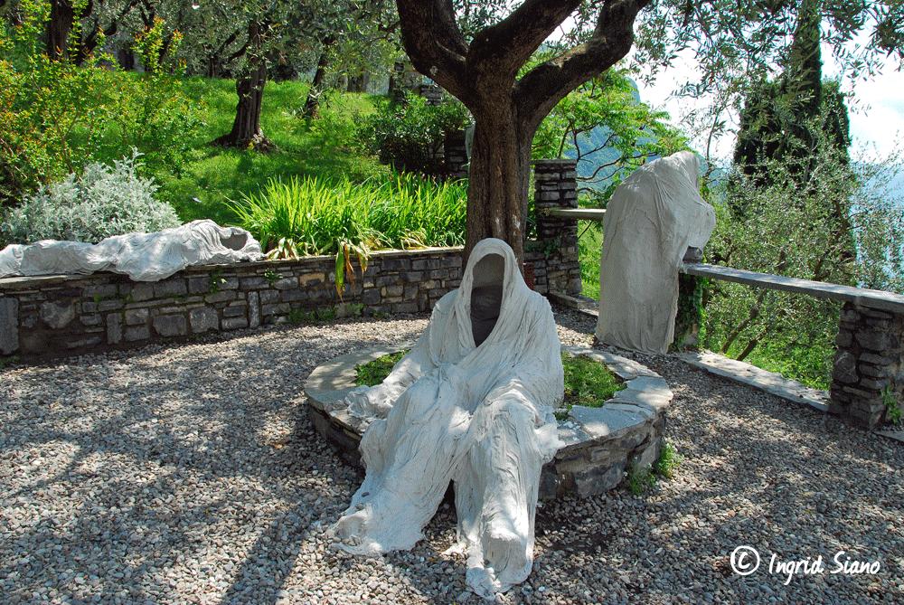 ภายในปราสาท Vezio ที่ตั้งตระหง่านอยู่เหนือหมู่บ้าน Varenna และทะเลสาบโคโม ประเทศอิตาลี มีประติมากรรมกลางแจ้งชุดหนึ่งที่กลายเป็นภาพจำของสถานที่แห่งนี้ นั่นคือรูปปั้นสีขาวซีดที่ดูคล้ายร่างมนุษย์ถูกคลุมด้วยผ้า บางตัวยืนพิงกำแพง บางตัวนั่งนิ่งอยู่ท่ามกลางสวนหิน บางตัวเอนกายอยู่ริมแนวกำแพงราวกับกำลังทอดสายตามองออกไปยังผืนน้ำสีครามของ Lake Como เบื้องล่าง ภาพที่เห็นชวนให้รู้สึกทั้งสงบ งดงาม และลึกลับในเวลาเดียวกัน จนผู้มาเยือนจำนวนมากมักเรียกพวกมันอย่างติดปากว่า “ผีแห่ง Vezio”