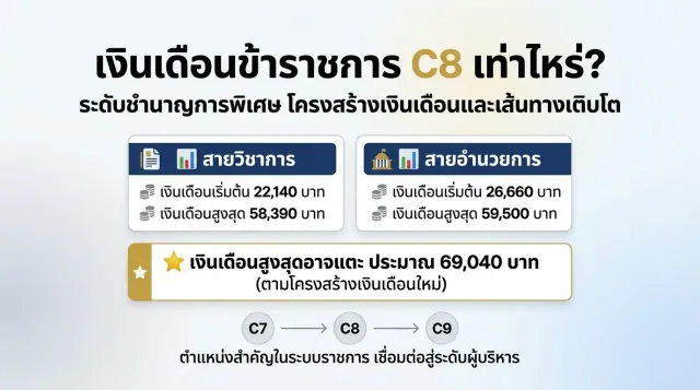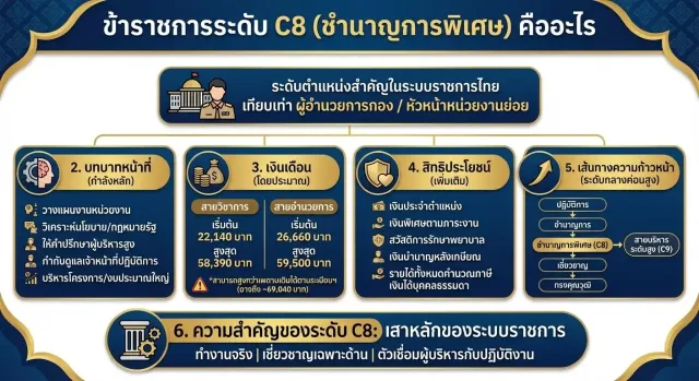 ในระบบราชการไทย ตำแหน่งระดับอาวุโสอย่าง “C8” ถือเป็นหนึ่งในระดับที่สะท้อนถึงทั้งประสบการณ์ ความเชี่ยวชาญ และความรับผิดชอบที่สั่งสมมาเป็นระยะเวลานานของบุคลากรภาครัฐ แม้ว่าปัจจุบันระบบตำแหน่งแบบ “ซี” จะถูกปรับเปลี่ยนไปสู่ระบบแท่งแล้ว แต่คำว่า C8 ยังคงถูกใช้ในความเข้าใจทั่วไป เพื่อสื่อถึงข้าราชการระดับชำนาญการพิเศษหรือระดับอาวุโสที่มีบทบาทสำคัญในหน่วยงาน หลายคนจึงเกิดคำถามว่า ในยุคปัจจุบัน ข้าราชการระดับนี้มีรายได้อยู่ที่เท่าใด และอะไรคือปัจจัยที่กำหนดความแตกต่างของรายได้ในแต่ละบุคคล