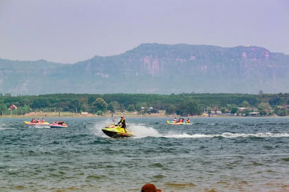ด้วยความที่เป็นพื้นที่ชุ่มนํ้าทำให้น้ำที่นี่นิ่งและใสจนดูเหมือนสระว่ายน้ำธรรมชาติขนาดมหึมาเป็นจุดพักผ่อนที่คนในพื้นที่และนักท่องเที่ยวต่างยกให้เป็นมัลดีฟส์เมืองอีสาน
