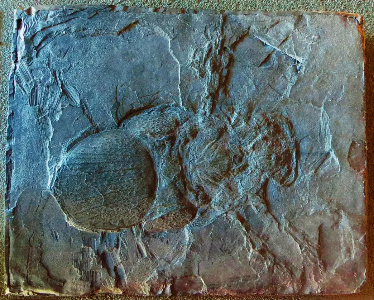 - แต่ปี 2005 ตรวจสอบใหม่พบว่า ไม่ใช่แมงมุม แต่เป็น eurypteridหรือ “แมงป่องทะเล” (sea scorpion) กลุ่มสัตว์ขาปล้องน้ำโบราณที่คล้ายแมงมุมแต่มีหางและโครงสร้างต่างออกไป