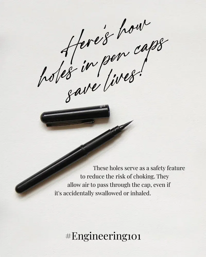 หลักการง่ายๆ คือเมื่อฝาปากกาหลุดลงคอและติดอยู่ที่หลอดลม รูเล็กๆ นี้จะทำหน้าที่เป็นทางด่วนให้อากาศไหลผ่านเข้าออกปอดได้ แม้จะไม่ใช่ปริมาณอากาศเต็มที่ แต่ก็เพียงพอที่จะประคองชีวิตผู้ป่วยไว้ได้ประมาณ 30-60 นาที ซึ่งเป็นเวลาทองที่ทีมแพทย์จะเข้ามาช่วยเหลือและนำฝาปากกาออกได้อย่างปลอดภัย บริษัท BIC ผู้ผลิตปากกาลูกลื่นรายใหญ่ของโลก (บ้านเราก็คุ้นมานานแล้ว) เป็นหนึ่งในผู้นำที่นำมาตรฐานนี้ไปใช้อย่างเคร่งครัด และเปลี่ยนภาพจำของฝาปากกาจากอันตรายเป็นความปลอดภัยโดยปริยาย