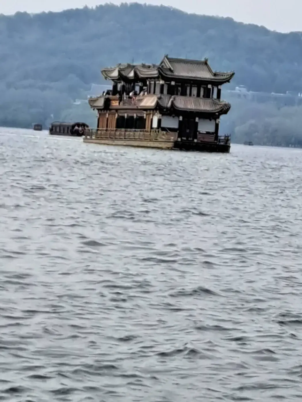 น้ำในทะเลสาป อาจจะไม่ใสปิ๊ง แต่ก็ถือว่าสะอาดระดับหนึ่ง เรือแล่นผ่านสถานที่สวยๆ หลายแห่ง ที่เด่นๆ คือ เจดีย์ งูขาว ที่มีตำนานรักสะท้านภพ เพื่อนๆ สามารถไปหาข้อมูลอ่านได้ทั่วไป และเมื่อมองไปโดยรอบ ของทะเลสาป จะเห็นฝูงชนที่เขาเดินเที่ยวกัน เอ่อ ไม่ใช่หลักพันแน่นอน มันคือหลักหมื่น อีกอย่างที่หลีกเลี่ยงไม่ได้คือ เสียงบนเรือดังมาก 555 เขาคุยกันดังมาก วันนั้นเพื่อนร่วมเดินทางไม่ใช่คนพื้นเพค่ะ แต่พวกเขาเดินทางมาจากสิบสองปันนา ซึ่งมีบางคนพูดภาษาไทยได้ค่ะ