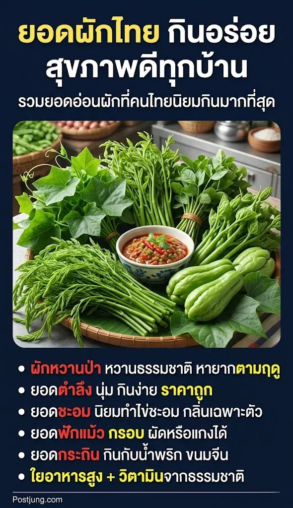 ยอดอ่อนของผักไม่ใช่แค่อร่อย แต่ยังสะท้อนวิถีการกินแบบไทยที่เรียบง่ายและได้ประโยชน์จากธรรมชาติ เพราะส่วนยอดมักมีไฟเบอร์ วิตามิน และแร่ธาตุสูงกว่าส่วนแก่
