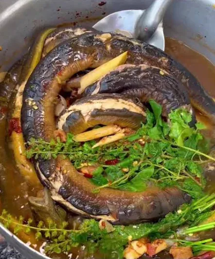 สำหรับคนที่คุ้นเคยกับการซื้อเนื้อปลาที่ทำสำเร็จแล้วในห้าง เมนูนี้อาจจะดูน่าตกใจ แต่นี่คือวิธีที่ชาวบ้านเชื่อว่าจะทำให้เนื้อปลาไหลมีความหวานและไม่มีกลิ่นคาว ซึ่งรสชาติที่ออกมานั้นต้องบอกว่านุ่มเด้งและหอมกลิ่นสมุนไพรแบบที่เมนูอื่นเทียบไม่ติดจริงๆ