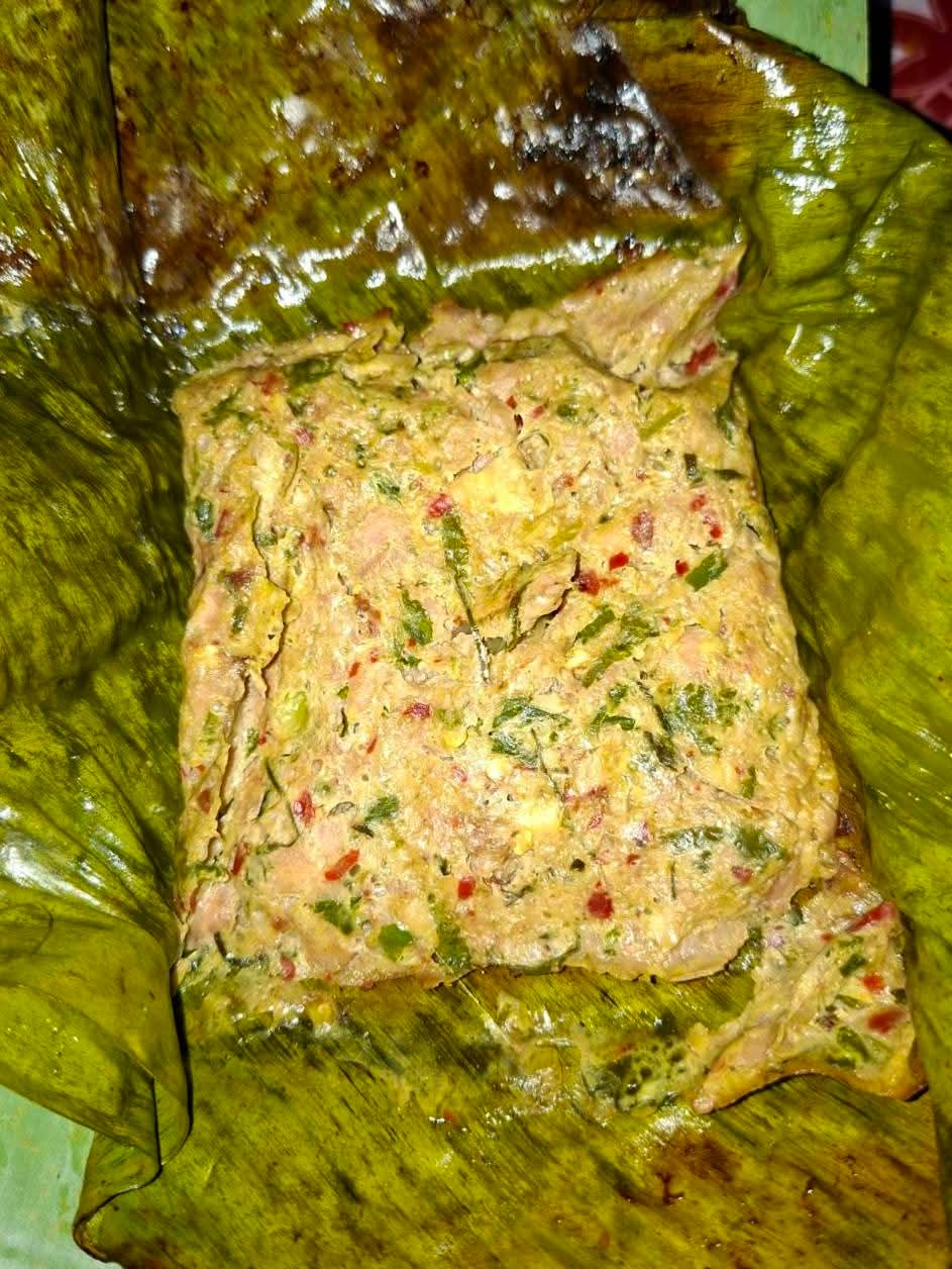 หน้าตาที่ดูเป็นก้อนนุ่มๆ อาจจะดูไม่ชวนกินสำหรับบางคน แต่ถ้าได้เปิดใบตองออกมากลิ่นหอมของสมุนไพรจะตีจมูกทันที รสสัมผัสมันจะละลายในปากแบบสุดๆ เป็นเมนูที่สายกับแกล้มเหนือต้องยกให้เป็นนัมเบอร์วัน