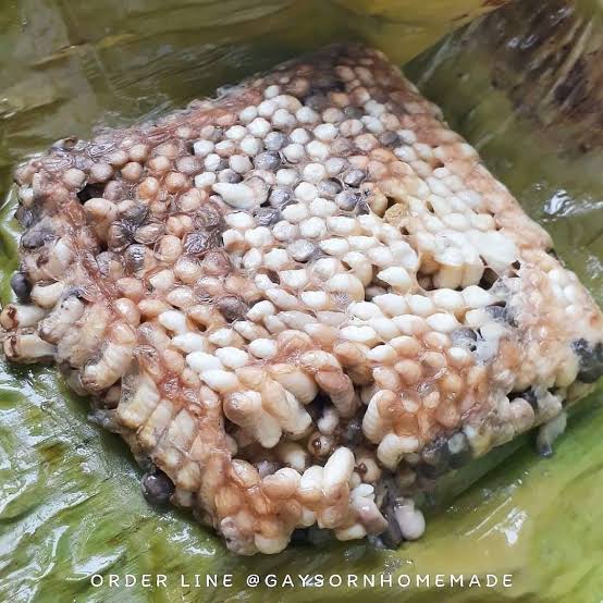เป็นเมนูที่ชอบกินมากตอนเด็กๆ เขาจะเขาป่าเพื่อไปหาผึ้ง ส่วนใหญ่อยู่บนต้นไม้สูง ในการหาผึ้ง เราจะได้ทั้งน้ำผึ้งและตัวอ่อนผึ้งมา วิธีทำคือนำมาย่างใส่ใบตองจนหอม บางคนราดน้ำผึ้ง แต่ส่วนตัวเราโรยเกลือและกินกับข้าวเหนียว อร่อยมาก