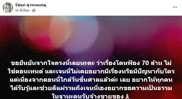 แม้หลายคนจะโฟกัสไปที่ตัวเลข 70 ล้านบาท แต่สำหรับ รัชนก สุวรรณเกตุ สิ่งที่กระทบหนักไม่แพ้กันคือ “สภาพจิตใจ”