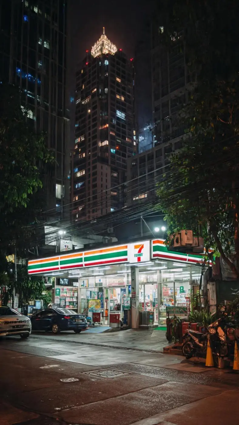 แล้วเห็นร้านเซเว่น ตั้งอยู่หัวมุมถนนฝั่งหนึ่ง อีกไม่กี่ก้าวถัดมาก็เจออีกสาขาหนึ่งตรงข้ามกัน หรือบางทีเดินต่อไปอีกนิดก็โผล่มาอีกสาขาจนแทบจะเรียกได้ว่าตะโกนคุยกันข้ามร้านยังได้เลย