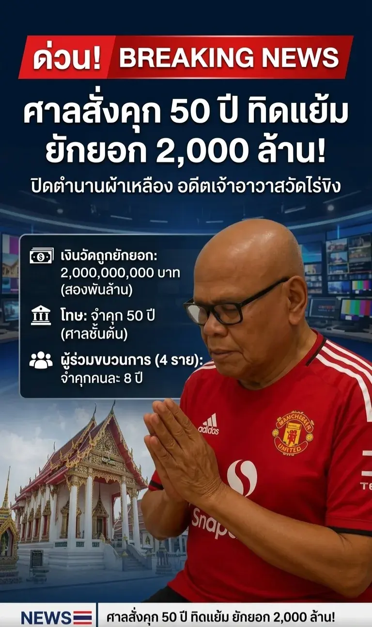 สะเทือนแรงศรัทธาชาวพุทธสุดๆ! เมื่อเงินทำบุญจากหยาดเหงื่อประชาชนกว่า 2,000 ล้านบาท ถูกสูบเข้ากระเป๋าส่วนตัวทำกันเป็นขบวนการ ล่าสุดศาลอาญาคดีทุจริตฯ มีคำพิพากษาเด็ดขาดออกมาแล้วครับ!