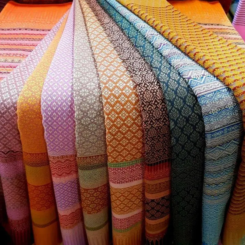 การเพิ่มเส้นไหมพิเศษ:ในการทอผ้ายก ช่างจะสอดเส้นไหมพิเศษ (เช่น ไหมทอง) เพิ่มเข้าไปในระหว่างการทอเพื่อให้เกิดลวดลายที่นูนขึ้นมาหรือมีความมันวาวเป็นพิเศษบนผืนผ้า