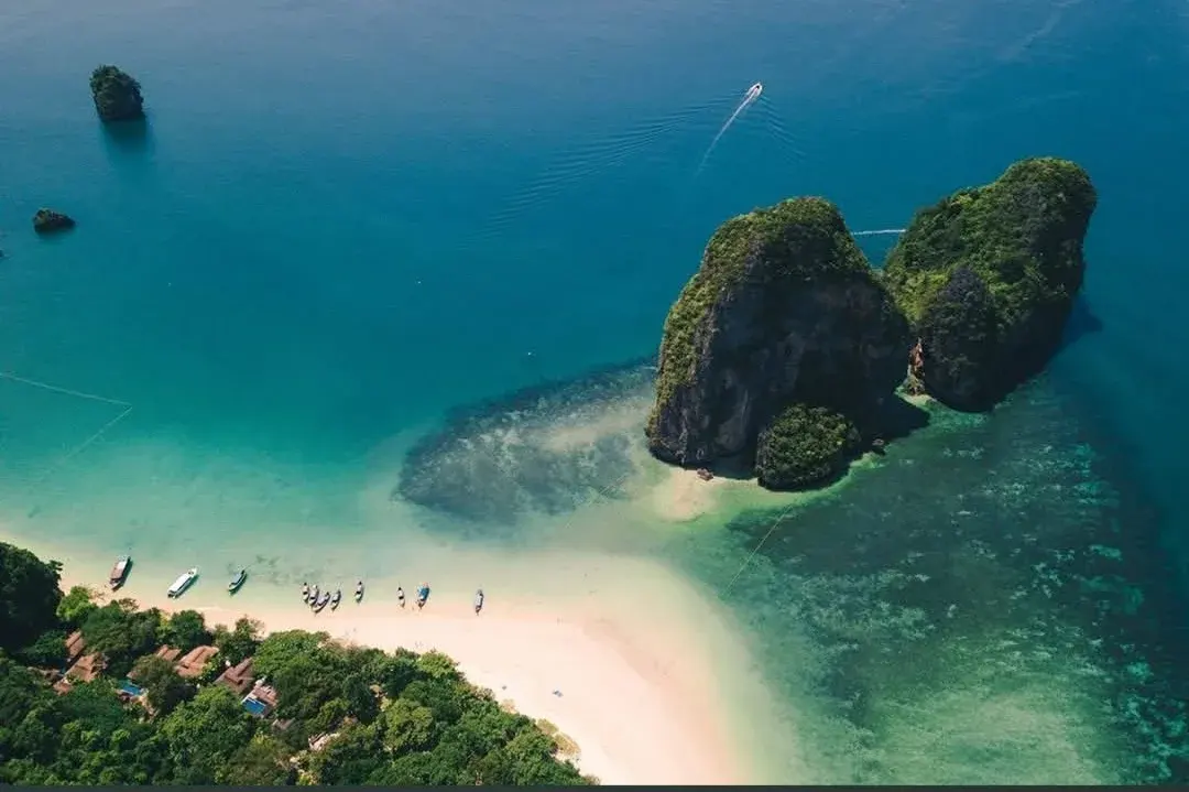 จุดเด่นสำคัญที่ปรากฏในภาพ ได้แก่ชายหาดชื่อดังอย่าง หาดนพรัตน์ธารา, อ่าวนาง, หาดไร่เลย์ และ หาดพระนาง ซึ่งล้วนเป็นแหล่งท่องเที่ยวระดับโลก โดยเฉพาะ “ไร่เลย์–พระนาง” ที่มีเอกลักษณ์เฉพาะตัว ต้องเดินทางเข้าถึงด้วยเรือเท่านั้น ยิ่งเพิ่มเสน่ห์และความน่าค้นหา
