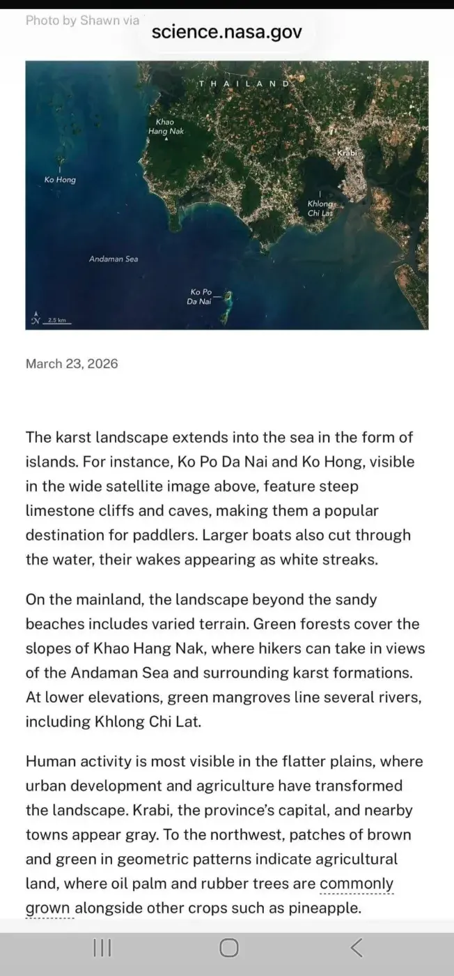 🌍 “กระบี่” ดังกระหึ่มโลก! NASA ยกชายฝั่งอันดามันเป็นภาพเด่น สะกดสายตาคนทั้งโลก