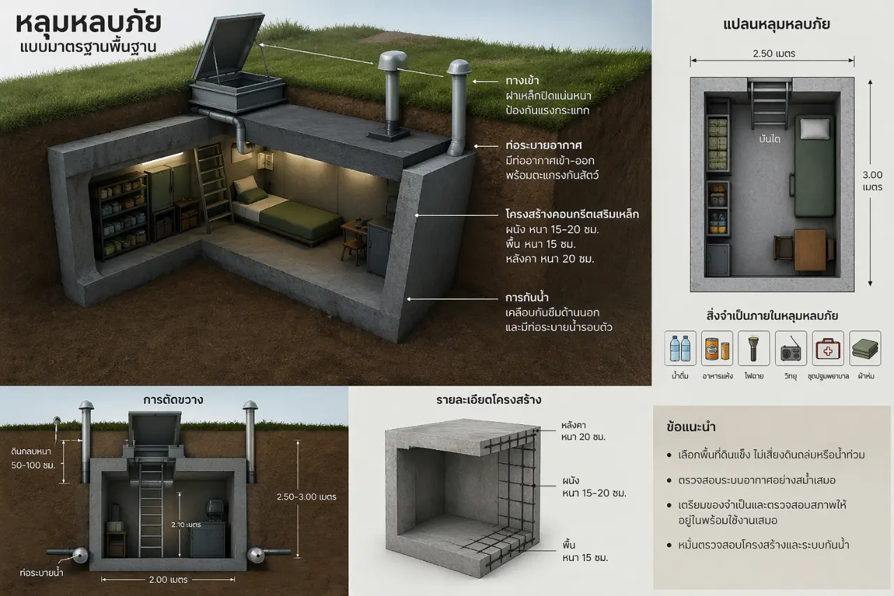 - มีกฎหมายบังคับให้ อาคารใหม่ต้องมีหลุมหลบภัย หรือมีสิทธิ์เข้าถึง