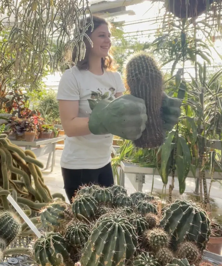 1. ที่ทำงาน พวกเราเคลื่อนย้ายต้นกระบองเพชร ด้วยถุงมือที่ใหญ่เหมือนมือฮัลค์