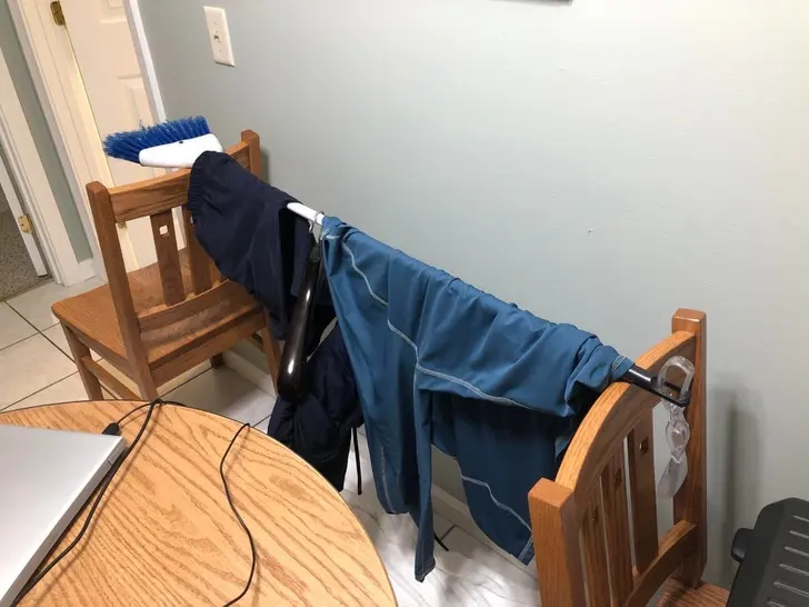 10. ฉันทำราวตากผ้าชั่วคราวสำหรับห้องพักโรงแรมของฉัน
