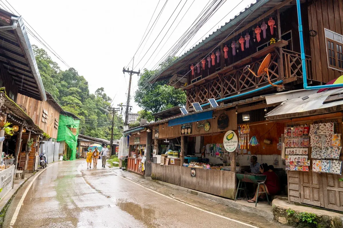 - ✨ ไฮไลต์: บรรยากาศช่วงเย็นที่ร้านรวงเริ่มเปิดไฟ จะได้แสงที่ถ่ายรูปสวยมาก และมีสะพานสีเหลืองที่เป็นจุดถ่ายรูปยอดฮิต