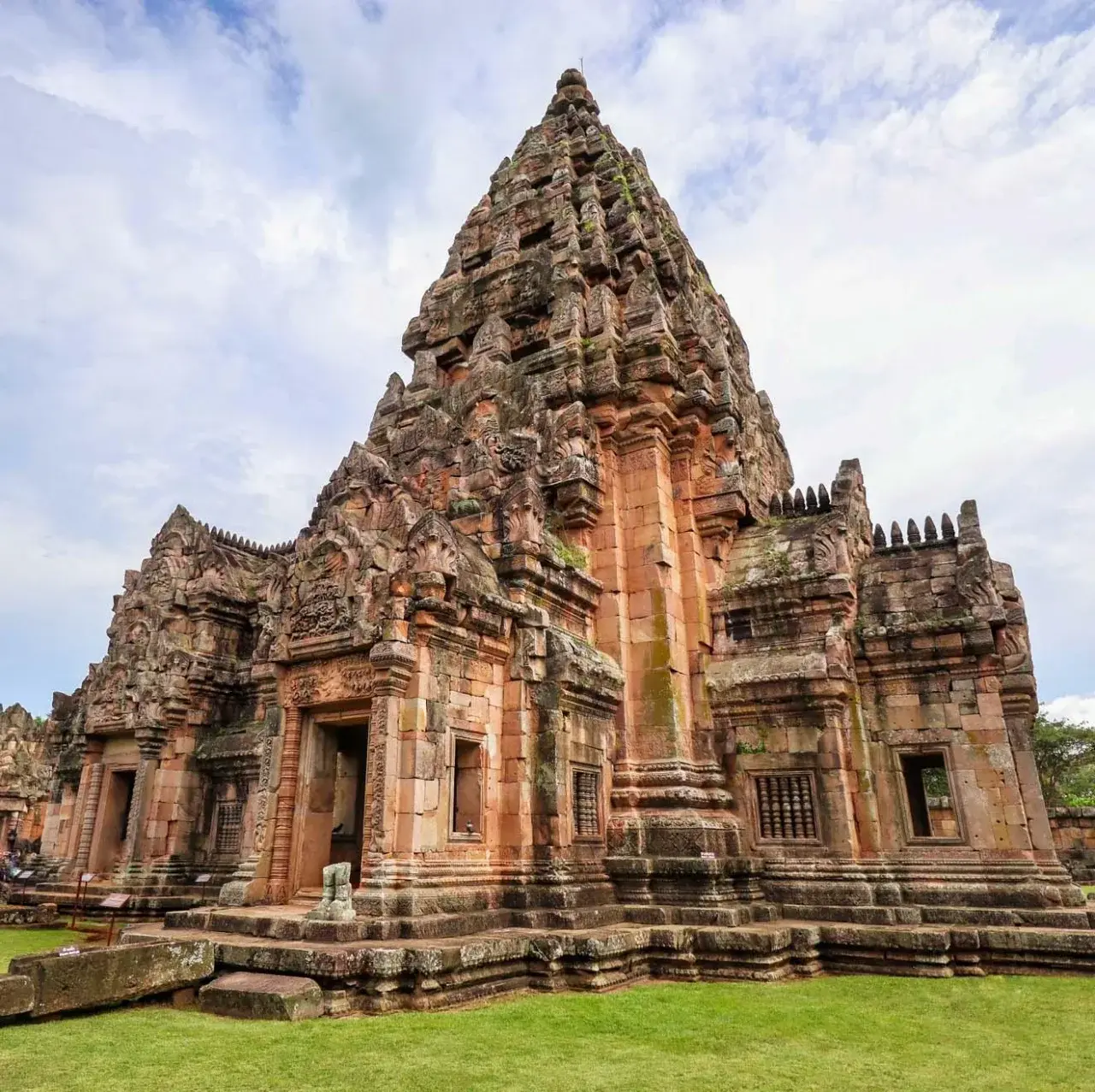 บนยอดภูเขาไฟที่ดับสนิทมานานในจังหวัดบุรีรัมย์ ปราสาทพนมรุ้งตั้งตระหง่านอยู่ท่ามกลางลมแรง แสงแดด และความเงียบขรึมของหินทรายเก่าแก่ ราวกับเป็นประตูที่พาผู้มาเยือนไหลย้อนกลับไปสู่โลกอีกยุคหนึ่ง ที่นี่คือหนึ่งในโบราณสถานศิลปะแบบเขมรที่งดงามและสำคัญที่สุดของไทย ก่อสร้างขึ้นต่อเนื่องหลายช่วงเวลา และมีชื่อเสียงอย่างยิ่งจากองค์ประกอบทางสถาปัตยกรรมที่ทั้งสง่างามและเปี่ยมความหมายทางศาสนา