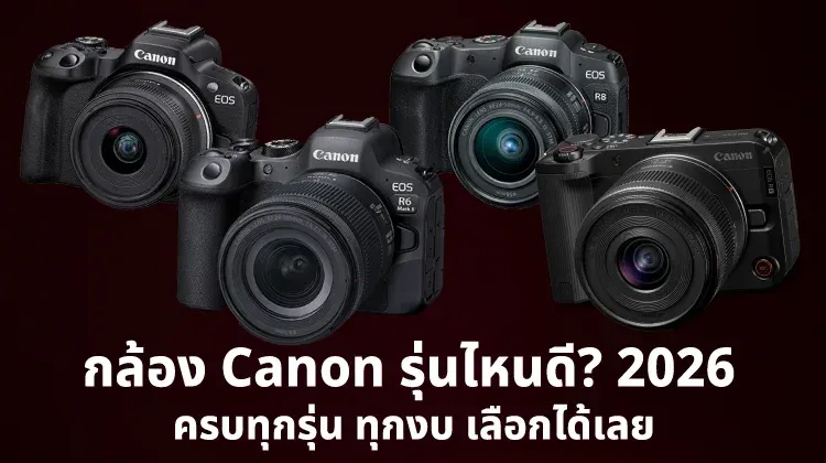 Canon คือแบรนด์กล้องที่มีผู้ใช้งานมากที่สุดในไทยมาหลายสิบปี เหตุผลหลักคือ AF ที่ใช้งานง่ายที่สุดในตลาด สีผิวที่สวยธรรมชาติ และมีรุ่นให้เลือกครบทุกระดับงบตั้งแต่หลักหมื่นต้นๆ ไปถึงระดับ Cinema แต่ด้วยจำนวนรุ่นที่มีมาก หลายคนจึงสับสนว่าควรเลือกรุ่นไหน บทความนี้จะแบ่งกล้อง Canon ทุกรุ่นที่น่าสนใจในปี 2026 ให้ชัดเจนตามงบและการใช้งาน เพื่อให้คุณตัดสินใจได้ง่ายขึ้นครับ