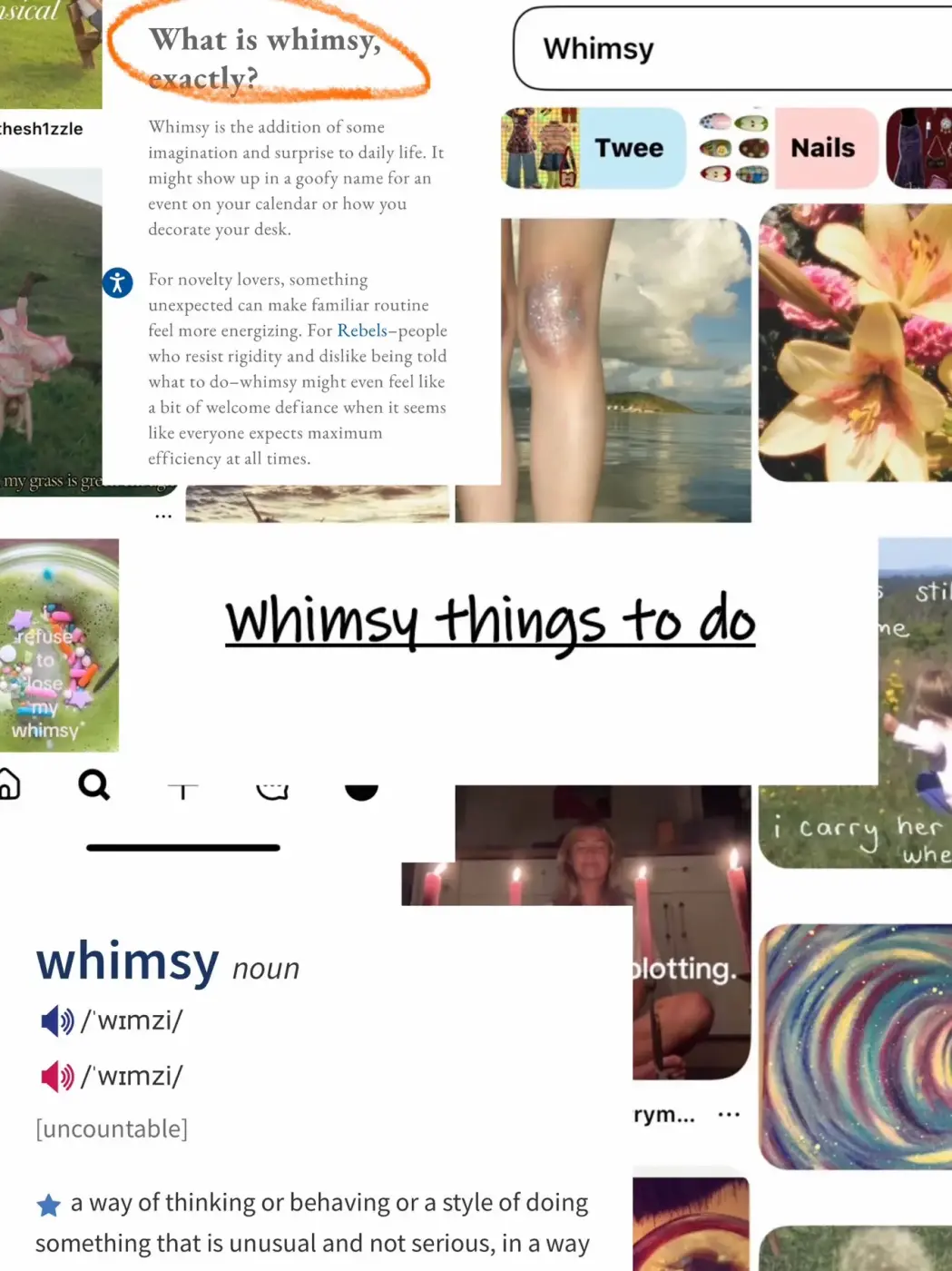 Oxford Dictionary ให้ความหมายของ “Whimsy” ว่า ‘a way of thinking or behaving or a style of doing something that is unusual and not serious, in a way that is either funny or annoying.’ หรือก็คือ แนวคิด การกระทำ หรือวิถีชีวิตที่แปลกไปจากปกติและไม่จริงจัง ซึ่งอาจดูตลกหรือน่ารำคาญก็ได้ สำหรับเราแล้ว เราขอนิยามง่าย ๆ ว่า แปลกแต่มีความสุข ‘be cringe, be weird, but happy.’