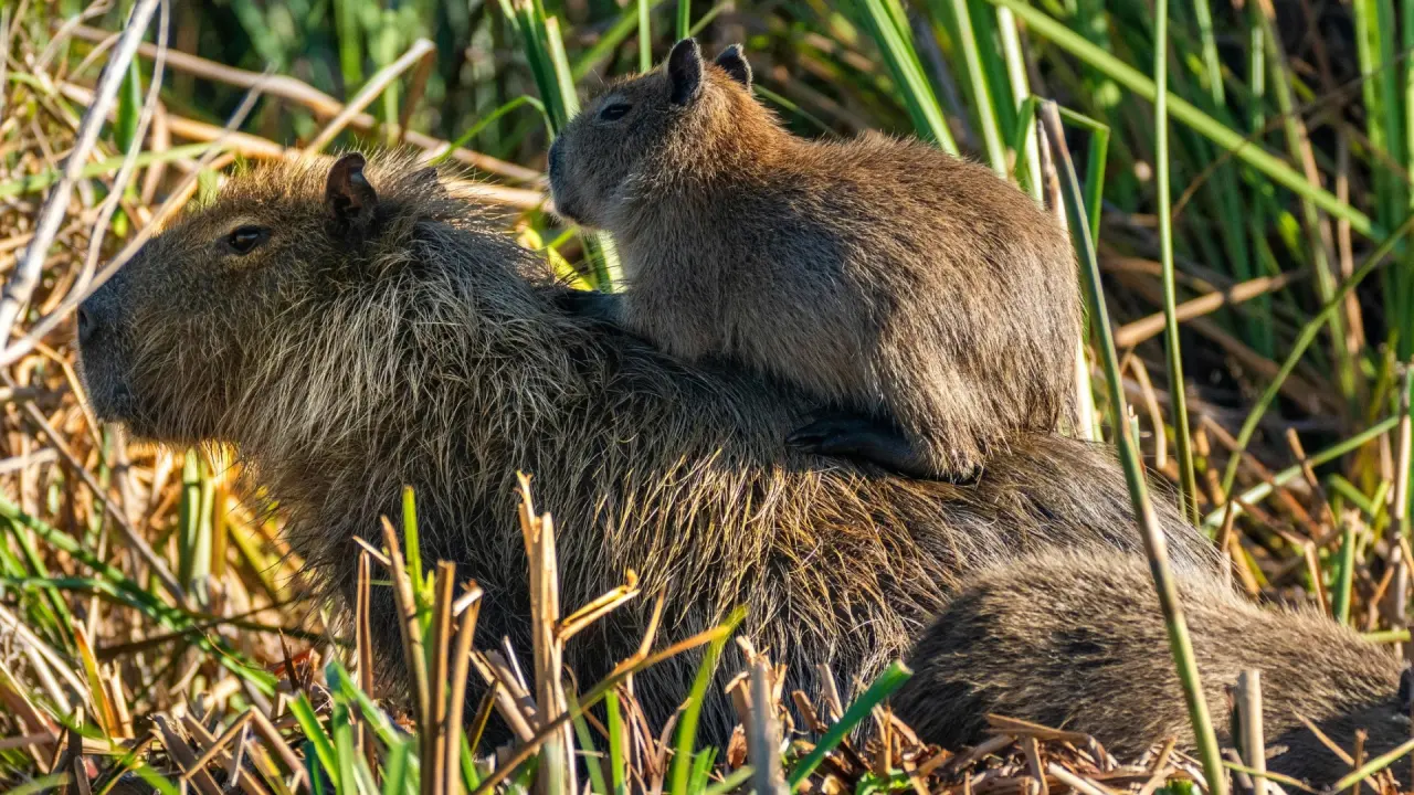 คาปิบารา คือสัตว์ฟันแทะที่ใหญ่ที่สุด พบในอเมริกาใต้ โตเต็มวัยยาวเกิน 1 เมตร หนักได้ถึง 55 กก.