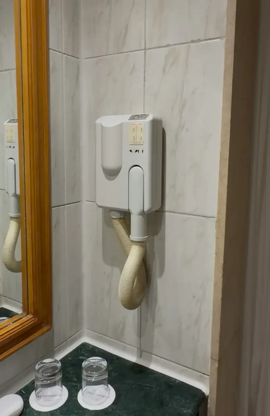 ไดร์เป่าผมในโรงแรม (โดยเฉพาะแบบติดผนัง) มักมีกำลังไฟต่ำ ลมเบา และต้องกดปุ่มค้างไว้ตลอดเวลา สำหรับผู้หญิงผมยาวหรือผมหนา การเป่าผมให้แห้งอาจใช้เวลานานกว่า 30 นาที ซึ่งนอกจากจะเสียเวลาเที่ยวแล้ว ยังทำให้เมื่อยมือจนแทบ "นิ้วล็อค" อีกด้วย