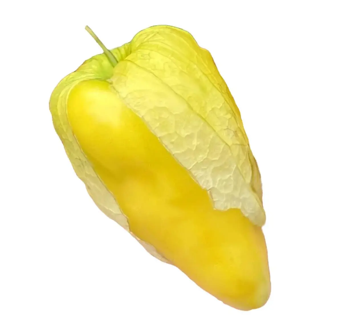 ผลของ Queen of Malinalco มักมีขนาดใหญ่กว่าโทมาทิลโลทั่วไปอย่างเห็นได้ชัด บางผลอาจยาวได้ถึง 3–4 นิ้ว รูปร่างเรียวยาว ปลายสอบลงอย่างมีเอกลักษณ์ เมื่อยังอ่อน ผลจะถูกห่อหุ้มด้วยเปลือกบางคล้ายกระดาษตามลักษณะของพืชในกลุ่ม Physalis แต่เมื่อเติบโตเต็มที่ ผลด้านในจะค่อย ๆ ดันเปลือกหุ้มให้ปริออก เผยให้เห็นสีเหลืองทองละมุนที่เป็นเสน่ห์สำคัญของสายพันธุ์นี้
