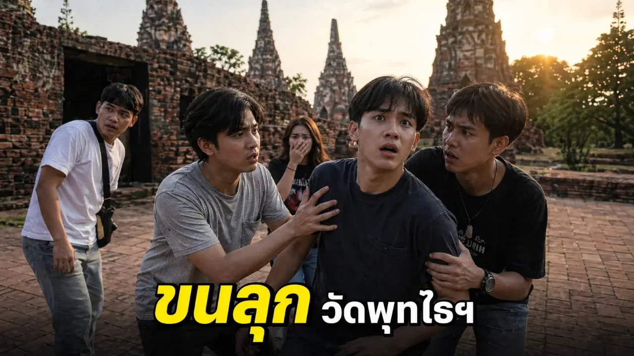 พวกเขากำลังเดินชมรอบวัดแห่งนี้ ถ่ายรูปและหยอกล้อกันตามประสาเพื่อน แต่หนึ่งคนในนั้นอย่าง นนท์ กลับดูเงียบกว่าปกติ เขามองไปรอบๆ บริเวณดังกล่าว เหมือนกำลังจะฟังอะไรบางอย่างที่คนอื่นไม่ได้ยิน