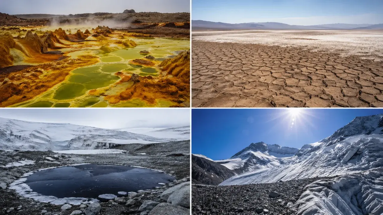 ที่ ทะเลสาบดัลลอล (Dallol) ในเอธิโอเปีย น้ำมีค่า pH ใกล้ 0 ความเค็มจัด และอุณหภูมิเกือบเดือดตลอดเวลา แม้แต่แบคทีเรียที่ทนทานที่สุดก็ยังแบ่งตัวไม่ได้ที่นี่ — นี่คือหนึ่งใน 4 พื้นที่บนโลกที่นักวิทยาศาสตร์จัดให้เป็น "เขตไร้ชีวิต" ด้วยเงื่อนไขทางเคมี-กายภาพที่รุนแรงเกินขีดจำกัดของสิ่งมีชีวิตทุกชนิดที่รู้จัก